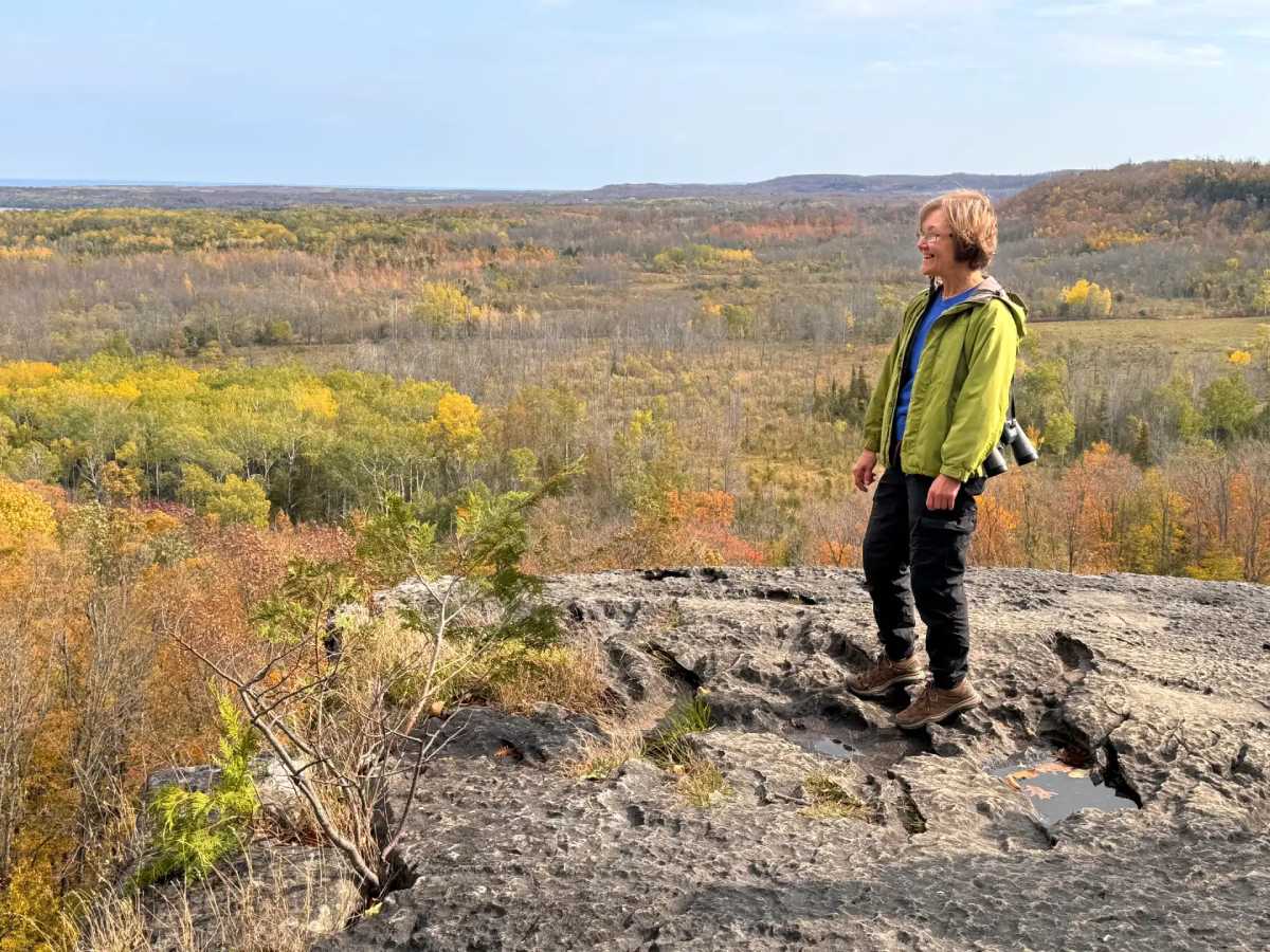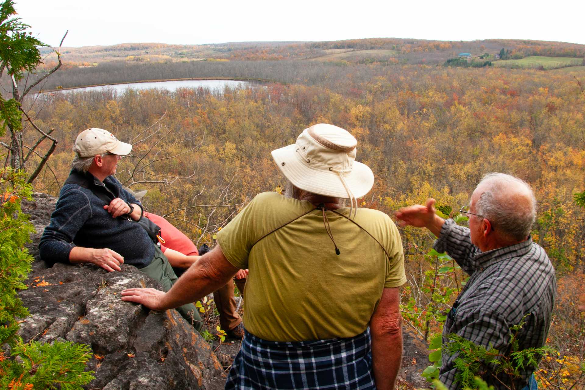 This hike took us to spectacular views from atop high cliffs on the south side of Colpoy’s Bay and also to an overview of a large wetland at the base of the escarpment.